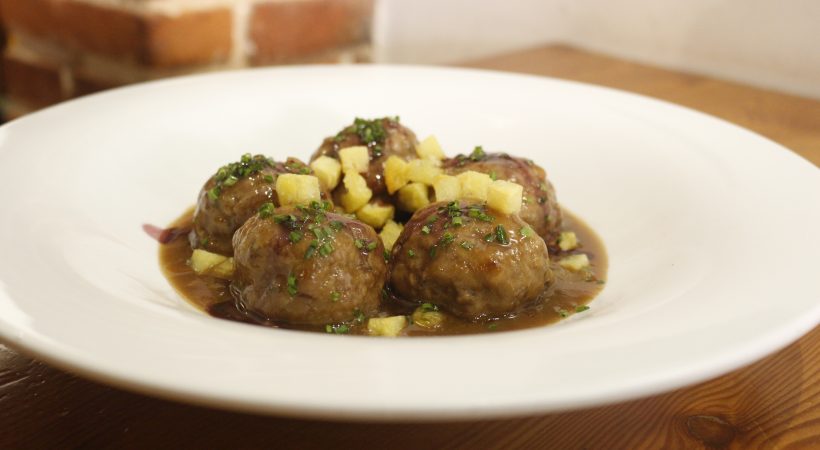 Albóndigas de carrilleras y vino tinto